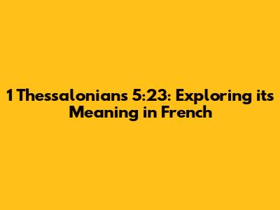 1 Thessalonians 5:23: Exploring Its Meaning In French