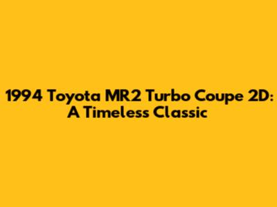 The 1994 Toyota MR2 Turbo Coupe 2D is a legendary sports car that continues to captivate enthusiasts with its exhilarating performance, distinctive design, and rich history. If you're a car enthusiast or simply appreciate automotive excellence, the MR2 Turbo is a model that deserves your attention. Let's delve into what makes this car so special.