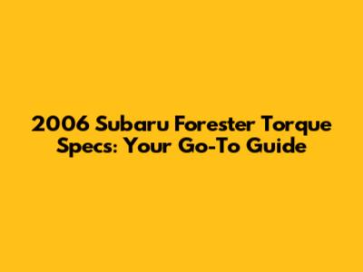 2006 Subaru Forester Torque Specs: A Comprehensive Guide