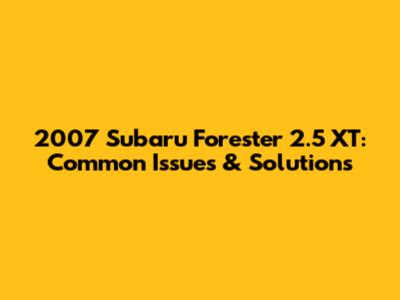 2007 Subaru Forester 2.5 XT: Common Issues & Solutions