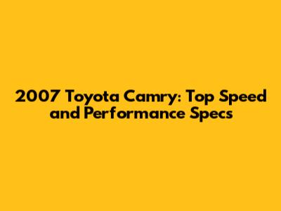 2007 Toyota Camry: Top Speed And Performance Specs