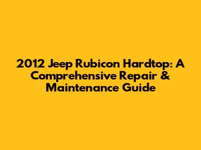 Hey Jeep enthusiasts! So, you're here because you're either a proud owner of a 2012 Jeep Rubicon Hardtop or you're thinking about joining the club, right? Well, you've come to the right place! We're diving deep into everything you need to know about keeping that beast of a machine in tip-top shape. This guide is your ultimate resource for repair and maintenance, covering everything from the common issues to the nitty-gritty details. Whether you're a seasoned mechanic or a DIY newbie, we've got you covered. Let's get started!