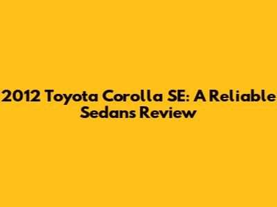 2012 Toyota Corolla SE: A Reliable Sedan's Review