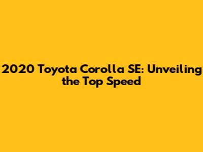 2020 Toyota Corolla SE: Unveiling The Top Speed