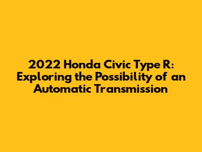 Hey car enthusiasts! Let's dive into the buzz surrounding the 2022 Honda Civic Type R, specifically the burning question on everyone's mind: will there be an automatic transmission option? The Civic Type R has always been the poster child for raw, engaging driving, a true driver's car. Its manual transmission is practically sacred. But, times change, and the automotive landscape is evolving. So, let's unpack the rumors, the possibilities, and what it all means for you, the potential buyer. We will be exploring the reasons behind the speculation, the potential benefits, and the impact it could have on the Type R's legendary status. Buckle up, guys; this is going to be a fun ride!