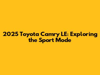 Hey guys! Let's dive into the 2025 Toyota Camry LE and specifically explore its sport mode. If you're considering this car, or already have one, understanding how the sport mode works and what it offers can seriously enhance your driving experience. So, buckle up, and let's get started!