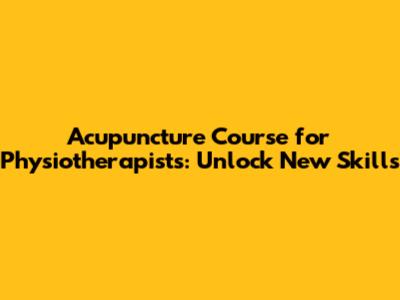 Acupuncture Course For Physiotherapists: Unlock New Skills