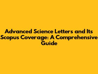Advanced Science Letters: A Deep Dive Into Scopus Coverage