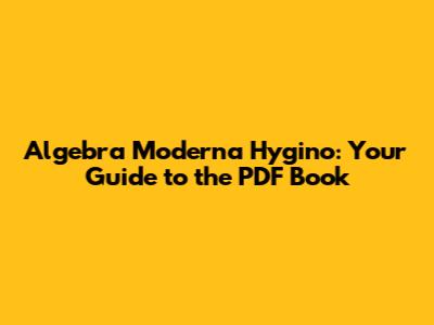 Algebra Moderna Hygino: Your Guide To The PDF Book