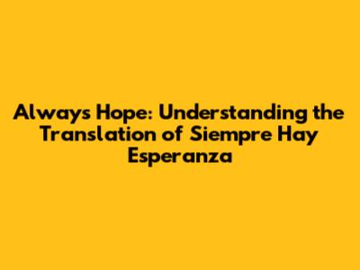 Always Hope: Understanding The Translation Of 'Siempre Hay Esperanza'