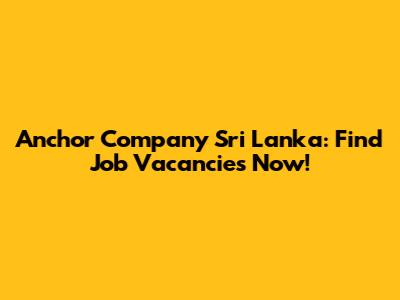 Anchor Company Sri Lanka: Find Job Vacancies Now!