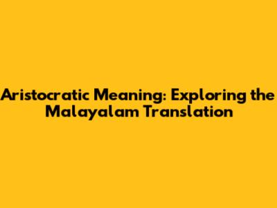 Aristocratic Meaning: Unveiling The Malayalam Translation