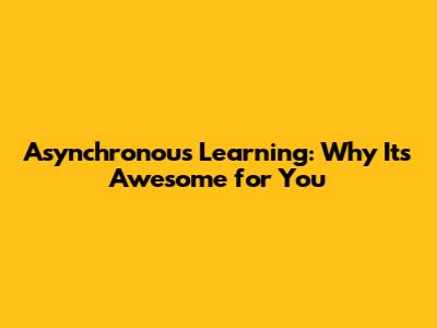 Asynchronous Learning: Why It's Awesome For You