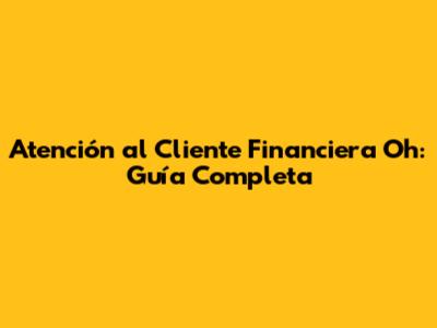Atención Al Cliente Financiera Oh: Guía Completa