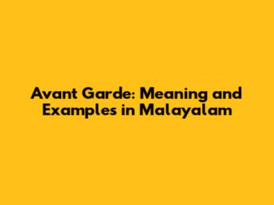 Avant Garde: Meaning And Examples In Malayalam