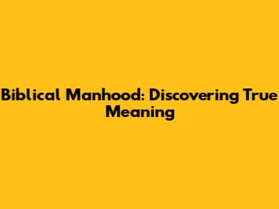 Biblical Manhood: Discovering True Meaning