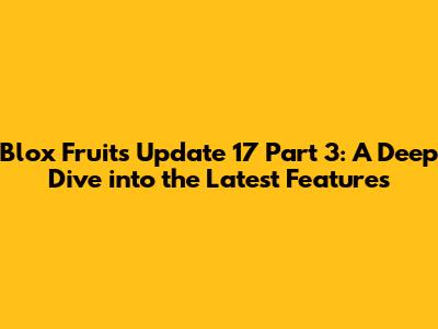 Hey everyone, are you ready to dive into the latest and greatest in the world of Blox Fruits? Because Update 17 Part 3 has arrived, and it's bringing a whole new level of excitement to the game. This massive update is packed with fresh content, from new fruits and fighting styles to exciting quests and areas to explore. So, buckle up, because we're about to embark on a journey through everything Update 17 Part 3 has to offer. We'll be exploring the new fruits that are sure to shake up the meta, taking a look at the fresh fighting styles that will give you an edge in combat, and uncovering the secrets of the new areas. Get ready to level up your Blox Fruits experience, guys!
