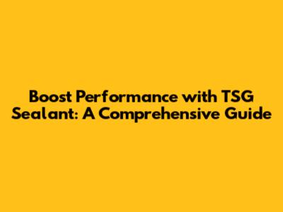Boost Performance With TSG Sealant: A Comprehensive Guide
