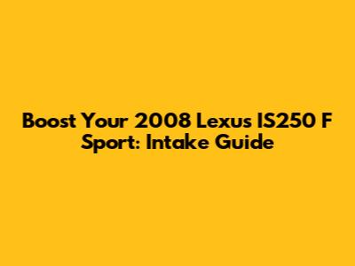 Boost Your 2008 Lexus IS250 F Sport: Intake Guide