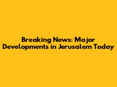Breaking News: Major Developments In Jerusalem Today