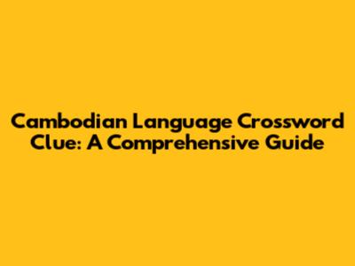 Cambodian Language: Unlocking Crossword Clues