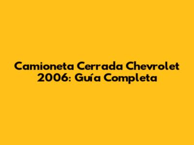 Camioneta Cerrada Chevrolet 2006: Guía Completa