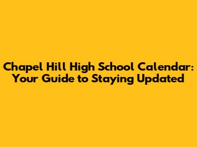 Chapel Hill High School: Stay Updated With The Latest Calendar
