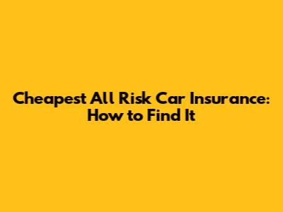 Cheapest All Risk Car Insurance: How To Find It