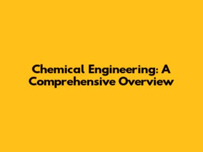 Chemical Engineering: A Comprehensive Overview