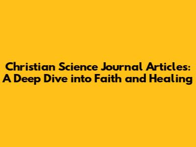 Christian Science Journal Articles: Exploring Faith & Healing