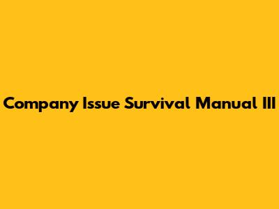Company Issue Survival Manual III