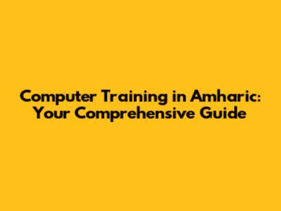 Computer Training In Amharic: Your Comprehensive Guide