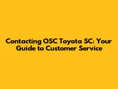 By following these tips, you can increase your chances of having a positive experience with OSC Toyota SC customer service. Remember, a little bit of preparation and a positive attitude can go a long way!
