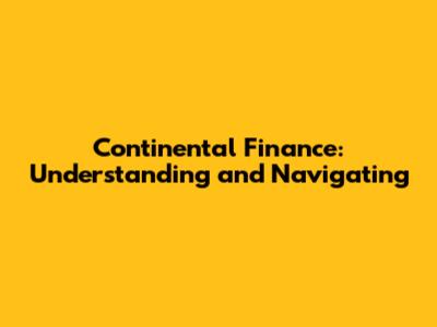 Continental Finance: Understanding And Navigating