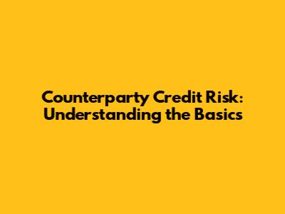 Counterparty Credit Risk: Understanding The Basics
