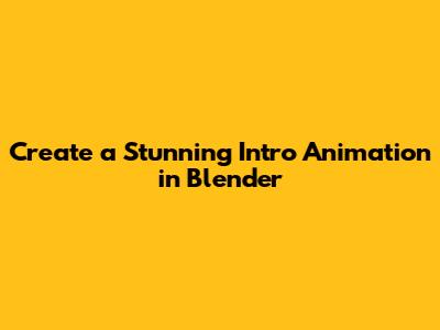 Create A Stunning Intro Animation In Blender