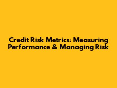 Credit Risk Metrics: Measuring Performance & Managing Risk
