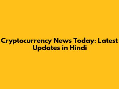 Cryptocurrency News Today: Latest Updates In Hindi
