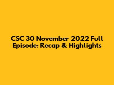 CSC 30 November 2022 Full Episode: Recap & Highlights