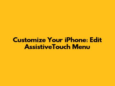 Customize Your IPhone: Edit AssistiveTouch Menu