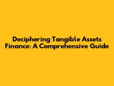 Deciphering Tangible Assets Finance: A Comprehensive Guide