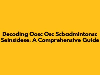 Decoding Oosc Osc Scbadmintonsc Seinsidese: A Comprehensive Guide