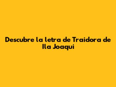 Descubre La Letra De Traidora De Ila Joaqui