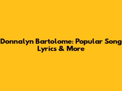 Donnalyn Bartolome: Popular Song Lyrics & More