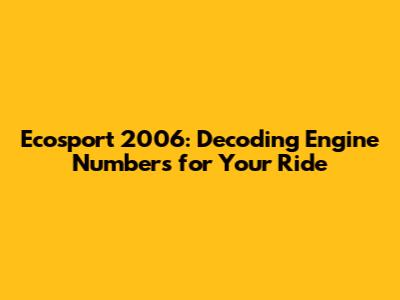 Ecosport 2006: Decoding Engine Numbers For Your Ride