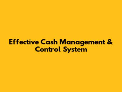 Effective Cash Management & Control System