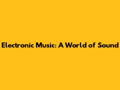 Electronic Music: A World Of Sound