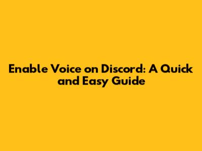 Enable Voice On Discord: A Quick And Easy Guide