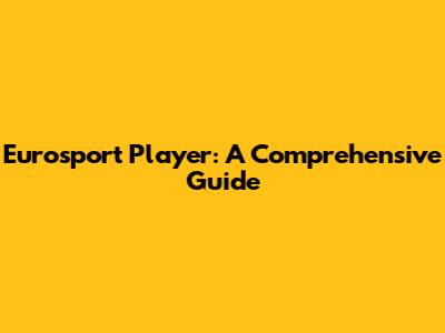 Eurosport Player: A Comprehensive Guide