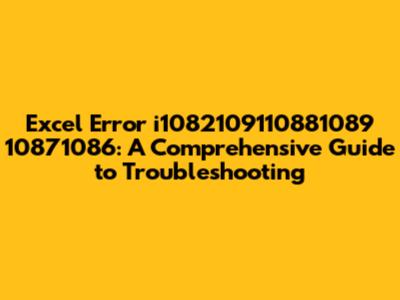 Excel Error I1082109110881089 10871086: Quick Fixes & Solutions